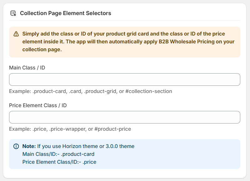๐ For collection page you can use main class/id of each element and price element class/id.