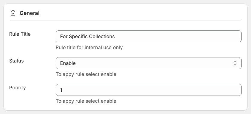 - Priority: Apply priority if you have mulstiple rule with same products/markets or others.