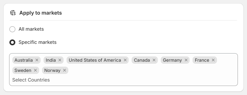โ Discount pricing apply to All Markets or Specific Markets. Also supported with all currency based on selected.