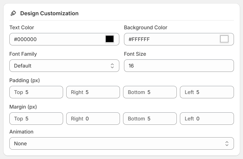 • Padding: You can apply the padding uniformly or customized on each side (top, right, bottom, left) to suit the layout needs.