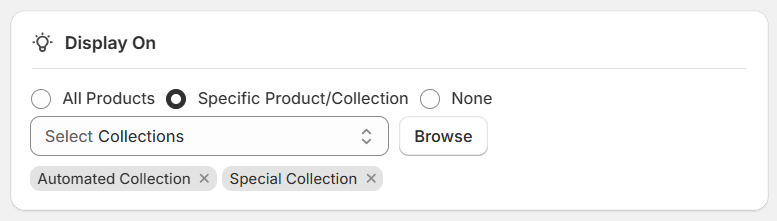 • Specific Product/Collection: Choose this option for display count on specific selected products or specific collections product.