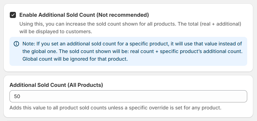 Note: If you enabled Display verified badge then that cases the Additional Sold Count will be disable and not working.