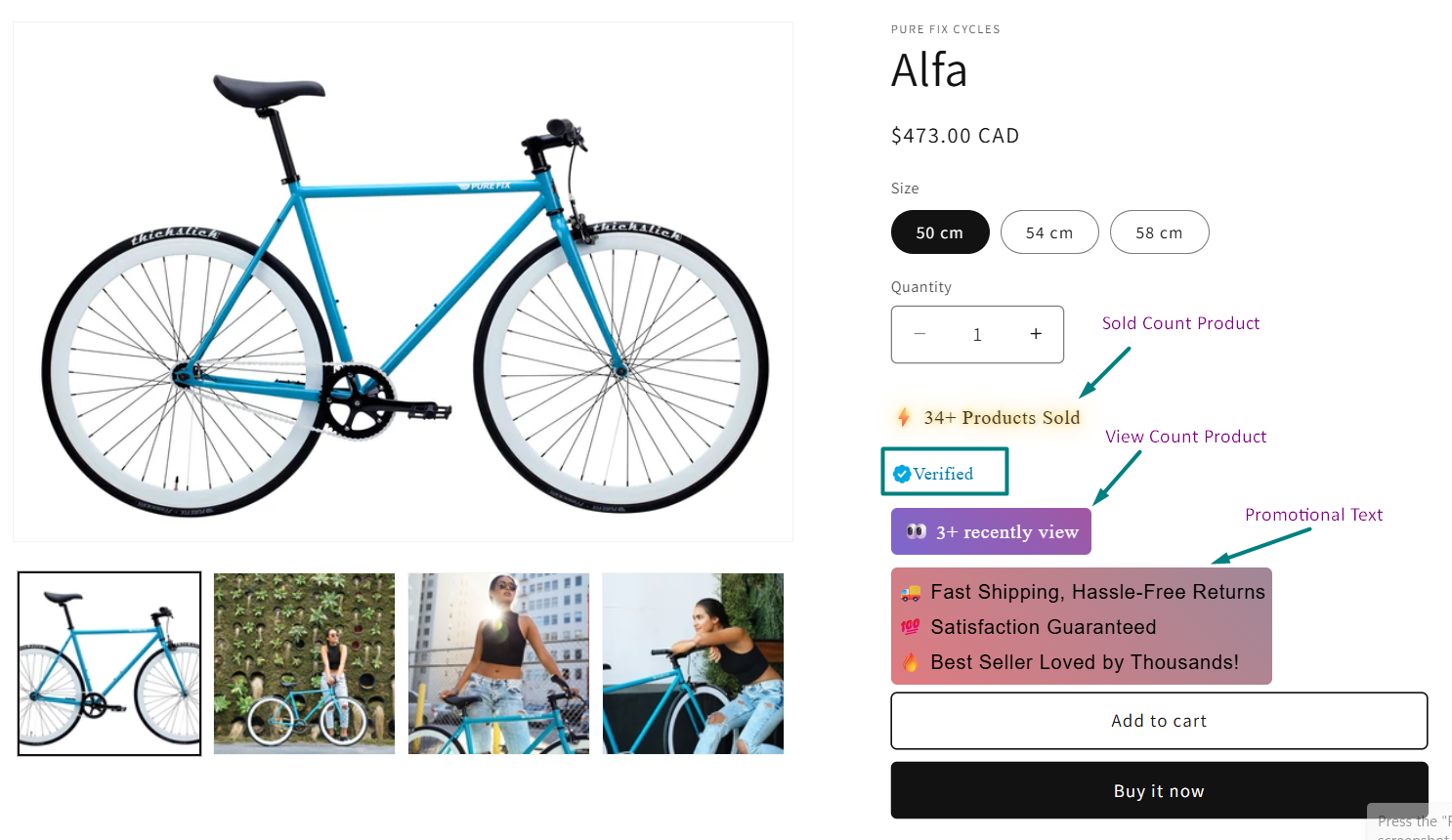 2. Display messages like Hurry! 100+ sold in last month or Selling fast – 50+ sold today, few left only! for Sold Count and 50+ recently view in 2 hours for View Count.