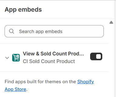 To make View Count: Sold Count Product work properly on your storefront, app embed must be enabled. Click the button below to open your theme editor: