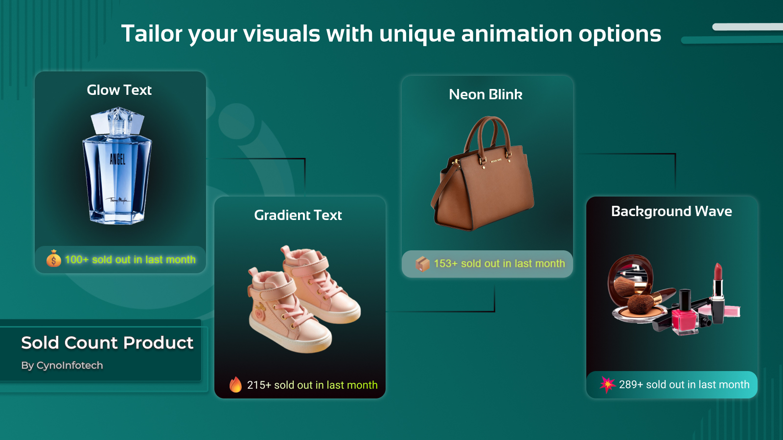 Make your offers stand out with visually dynamic elements like glow effects, animated gradient text, blinking neon highlights, and wave-style background animations. These interactive styles grab attention instantly, enhance user experience, and help drive more clicks and sales on your store.