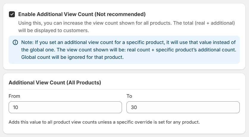 • You can add the additional number for All Products, it's shows on frontend real+additional view count number.